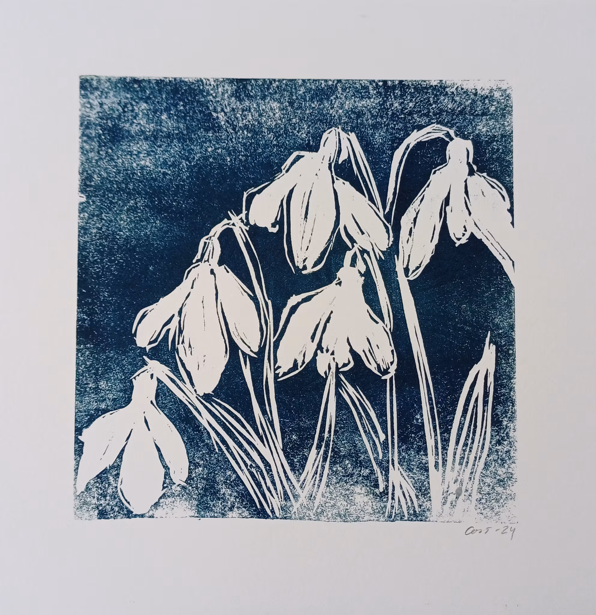 "Snowdrops" - Linoprint