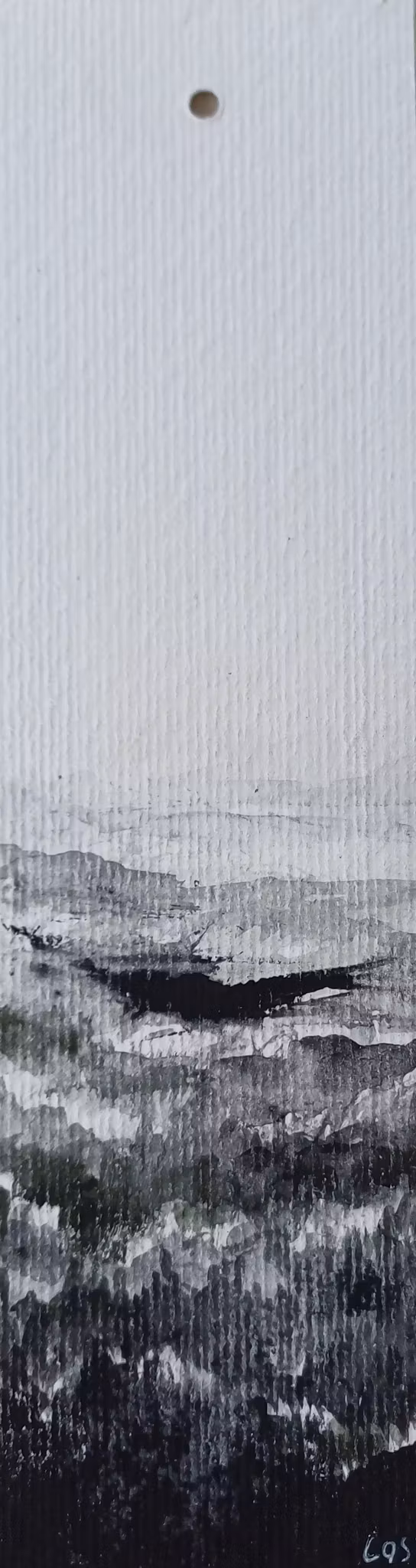 Handmålat bokmärke med skogsmotiv i storleken 19.5x5.5 cm.